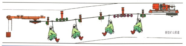 猴車,正式全稱為礦山架空乘人索道,主要用于地下礦山輔助運(yùn)輸工人.猴車將鋼絲繩安裝在驅(qū)動(dòng)輪、托繩輪、壓繩輪、迂回輪上并經(jīng)張緊拉緊裝置后,由驅(qū)動(dòng)裝置輸出動(dòng)力帶驅(qū)動(dòng)輪和鋼絲繩運(yùn)行,從而實(shí)現(xiàn)輸送礦工的原理。用架空乘人裝置來輸送礦工,其目的是縮短礦工上下井的路途時(shí)間,減輕礦工上下井的體能消耗。