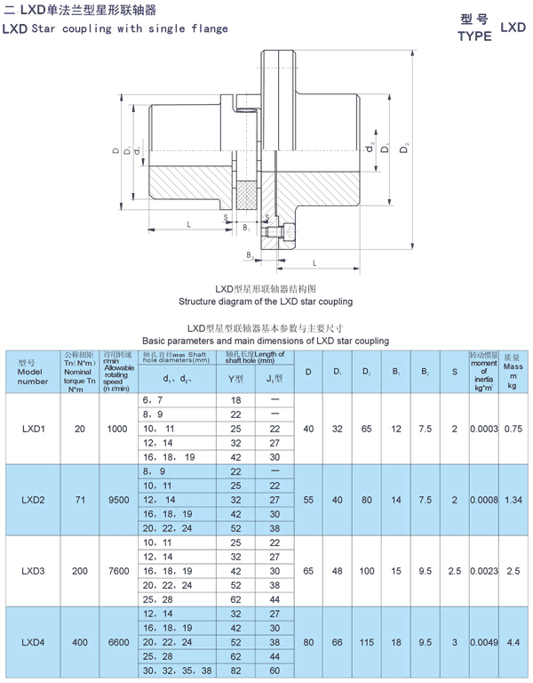 LXD(XLD)系列單法蘭星形彈性聯(lián)軸器