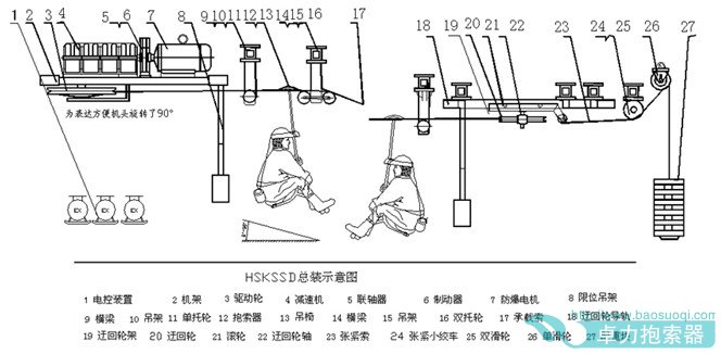 煤礦固定抱索器架空乘人裝置(以下簡(jiǎn)稱(chēng)乘人裝置)是煤礦井下輔助運(yùn)輸設(shè)備,是煤礦斜井和平巷運(yùn)送人員上下的專(zhuān)用工具。它主要由驅(qū)動(dòng)部分、托繩部分、乘人部分、尾輪部分、張緊部分及電控部分組成。具有運(yùn)行安全可靠、人員上下方便、操作簡(jiǎn)單、維修方便、動(dòng)力消耗小、輸送效率高、一次性投資低等特點(diǎn)。是一種新型的現(xiàn)代化礦山人員輸送設(shè)備。